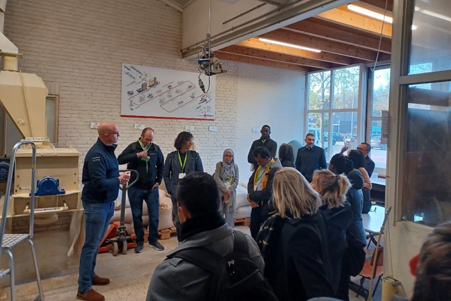 Het tweede deel van het bezoek bestond uit een rondleiding op de campus en het bezoeken van de praktijklocaties. Bij het Poultry Innovation Lab, de Maalderij en het Insect Experience Centre kreeg de groep uitleg over de activiteiten die daar plaatsvinden. Tevens konden ze een kijkje nemen bij en in de insectenkweekunit van Amusca. Afsluitend was er ruimte voor discussie onder het genot van een kopje koffie en wat lekkers.