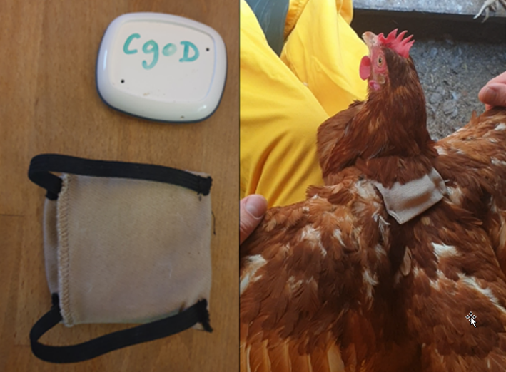 In het laatste onderwerp heeft Aeres ook een rol. Aeres heeft namelijk met het bedrijf Noldus Information Technology een samenwerking in dit project. Samen willen we met behulp van trackers gedragsobservaties uitvoeren en aanwijzingen vinden voor diergezondheid en welzijn. Deze trackers, Figuur 3, zijn met behulp van een “rugzak” geplaatst op de hennen. Met andere progamma’s van Noldus, zoals het Tracklab systeem, The Observer XT en een Mediarecorder (om de video en audio te synchroniseren) wordt de werking van deze trackers getest. Aeres heeft hierbij een actieve rol bij en voert onder andere gedragsobservaties uit om te kijken of de metingen van de tracker overeenkomen met humane waarnemingen van gedrag.